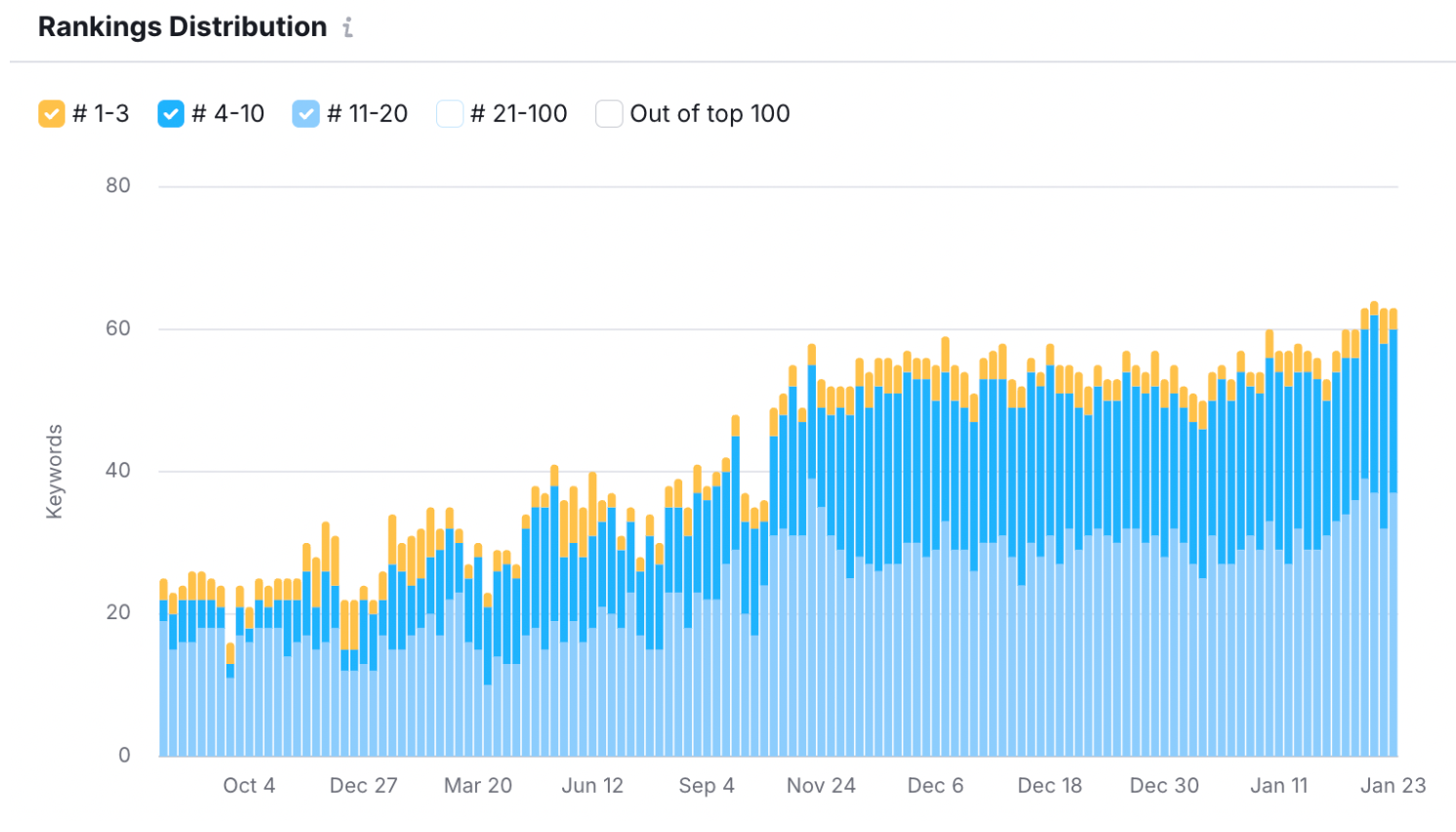 Over 10 competitive keywords achieved Google’s Top 3 rankings, including niche and long-tail keywords.